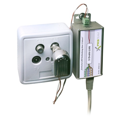 Das 2-Draht-LAN System agiert prinzipiell wie ein Powerline System. Anders als bei Powerline was die Stromadern belegt, nutzt das 2-Draht-LAN System die Leitung exklusiv für sich und wird nicht vom gleichzeitig fließsenden Strom gestört.